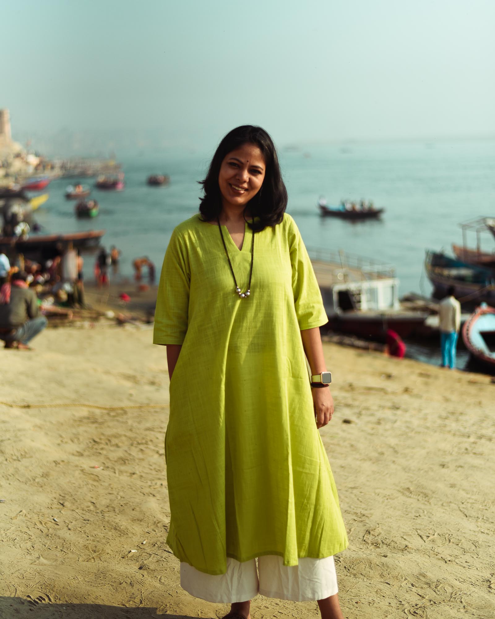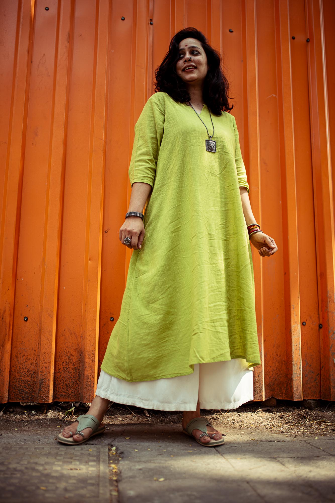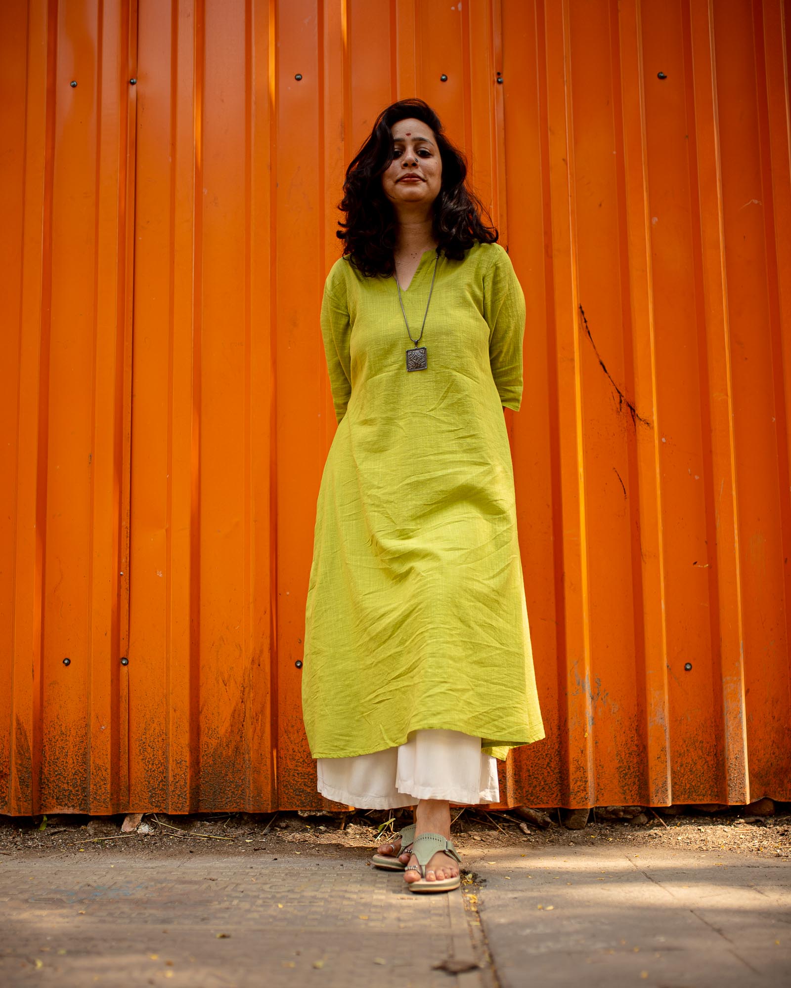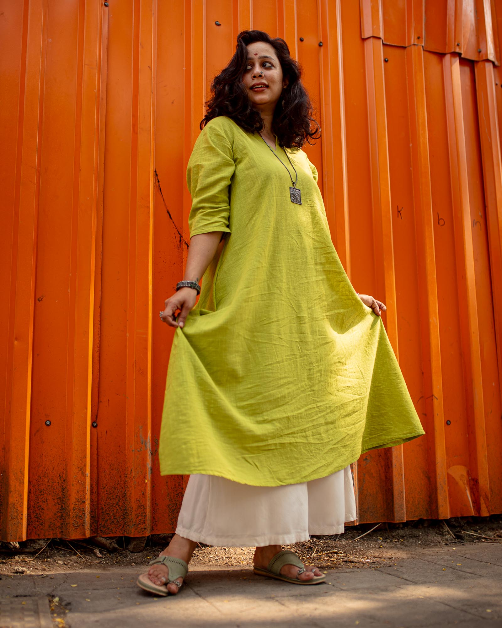 Fresh, effortless and made for everyday elegance — the Kachhi Kairi Kurta is crafted from breathable slub cotton, a fabric loved for its natural texture and all-day comfort. Designed in a refreshing raw mango green, this A-line kurta brings together simplicity and quiet sophistication.